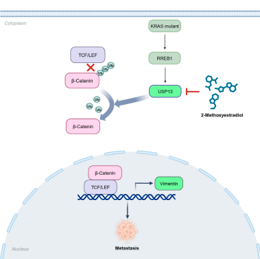 该研究鉴定USP13是治疗转移性KRAS突变肿瘤的潜在药物靶点。并且,筛选发现了一个天然小分子药物2-Methoxyestradiol能够直接抑制USP13活性,为通过靶向USP13治疗KRAS突变肿瘤的转移提供了一个先导化合物,具有临床转化潜力。将为KRAS突变肿瘤的精准治疗提供了一个新的科学依据。百家乐单机游戏下载 博士生田家欣为该论文的共同第一作者。