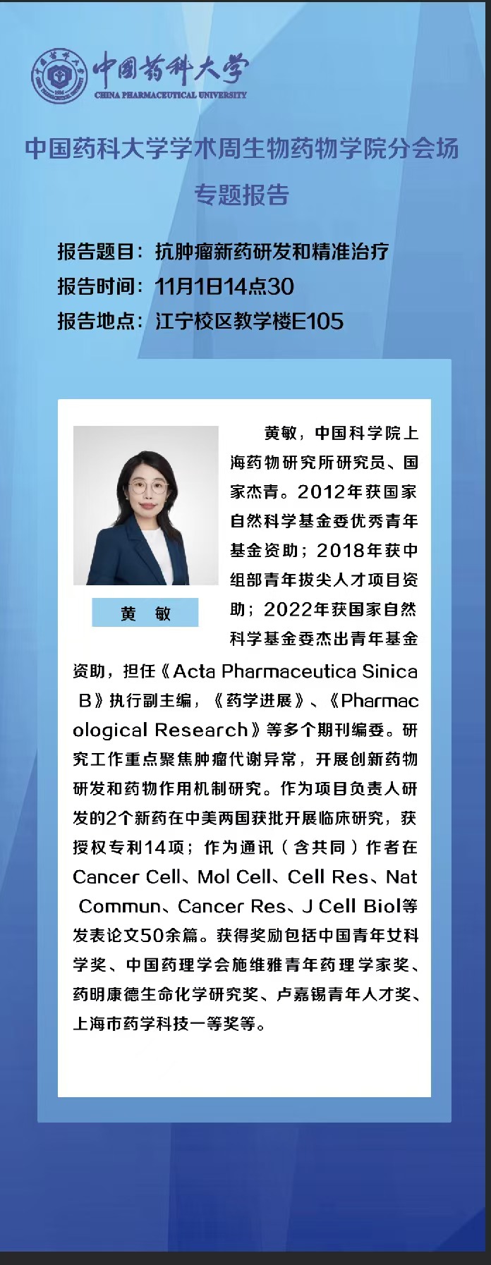 中国药科大学学术周百家乐单机游戏 分会场专题报告通知