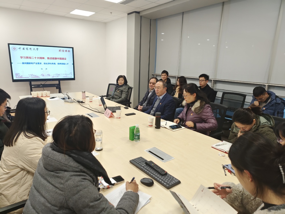 陆涛副校长的报告,结合学校学科特色、发展痛点和国家亟需,就如何布局、如何开展工作为我们指明了方向。师生党员表示将更新理念、积极拓展“药”的学科内涵,为学校高质量发展、为我国向医药强国转变贡献力量。