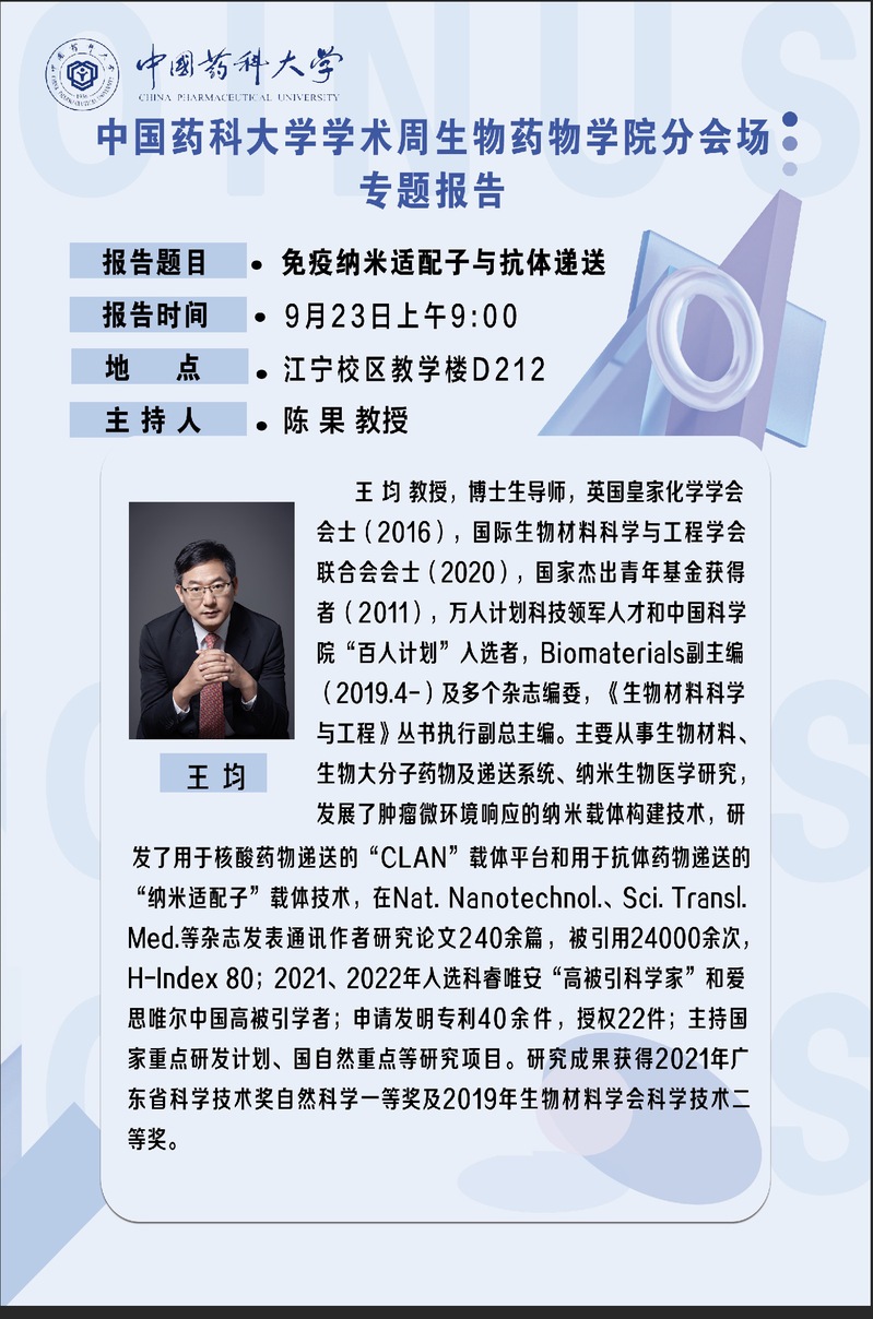 中国药科大学学术周百家乐单机游戏 分会场专题报告通知